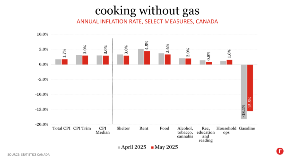 A particular focus for the Bank of Canada is its preferred measures of core inflation: CPI Trim and CPI Median. Both of these metrics, which strip out the most volatile components of inflation, sat at 3.0% in May, down from 3.1% in April. This is a positive directional change for the Bank, and they will be looking for more progress when the June CPI is released on July 15th.