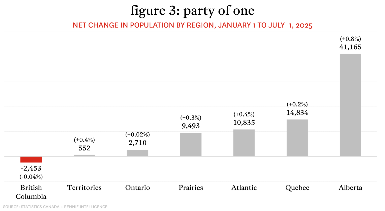 As noted in the opening to this piece, should the immigration policies of the day play out as designed, Canada may be headed for its first decline in population in the nation’s history. The effects of this policy shift (or extension, depending on how you want to look at it), as manifested by actual population data through the first half of 2025, won’t be spread evenly across the country, either. Both BC and Ontario will continue to see outsized downward pressure on their populations. By recommitting to last year’s sharp shift in immigration policy, the federal government has ensured that the historic pace of change witnessed this year will continue to be a dominant feature of Canada’s demographic landscape.
