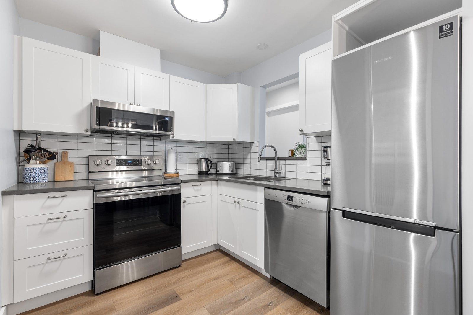 Washer/Dryer, Dishwasher, Refrigerator, Stove, Microwave
